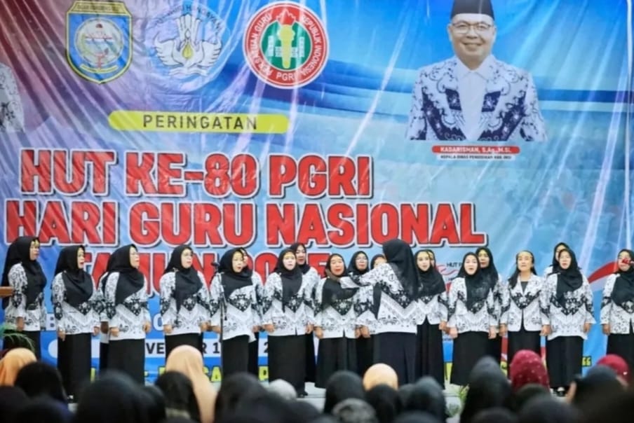 Teddy juga menyampaikan ucapan “Selamat HUT PGRI ke 80 dan Hari Guru Indonesia, Teddy meminta diusia ke-80 ini PGRI semakin menguatkan kembali semangat pengabdian.