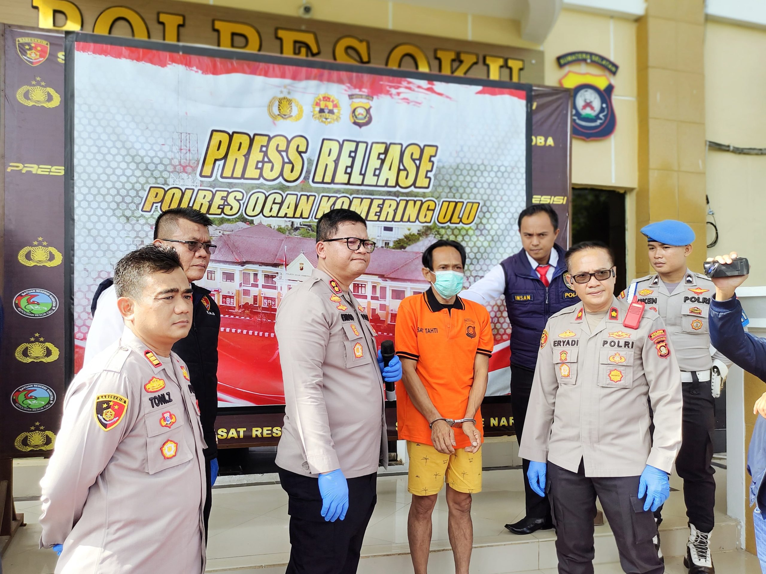 Kapolres OKU AKBP Endro Aribowo dalam press release Rabu (04/08/2025) di Mapolres OKU didampingi Wakapolres OKU Kompol Eryadi, Kasat Reskrim AKP Redho Agus Suhendra, Kapolsek Baturaja Barat AKP Toni Zainudin serta sejumlah PJU Polres OKU.