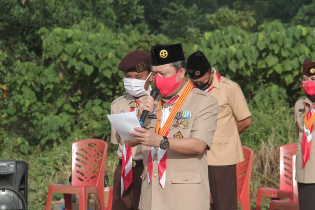BATURAJA,Samudra.News-Sekda OKU Dr. Drs. Ir. H. Achmad Tarmizi, SE, MT, MSi, MH memimpin Upacara HUT Pramuka Ke-59 Tahun 2020 Kabupaten OKU, Bertempat di Bumi Perkemahan Kemelak Baturaja, Jum’at (14/08/2020).