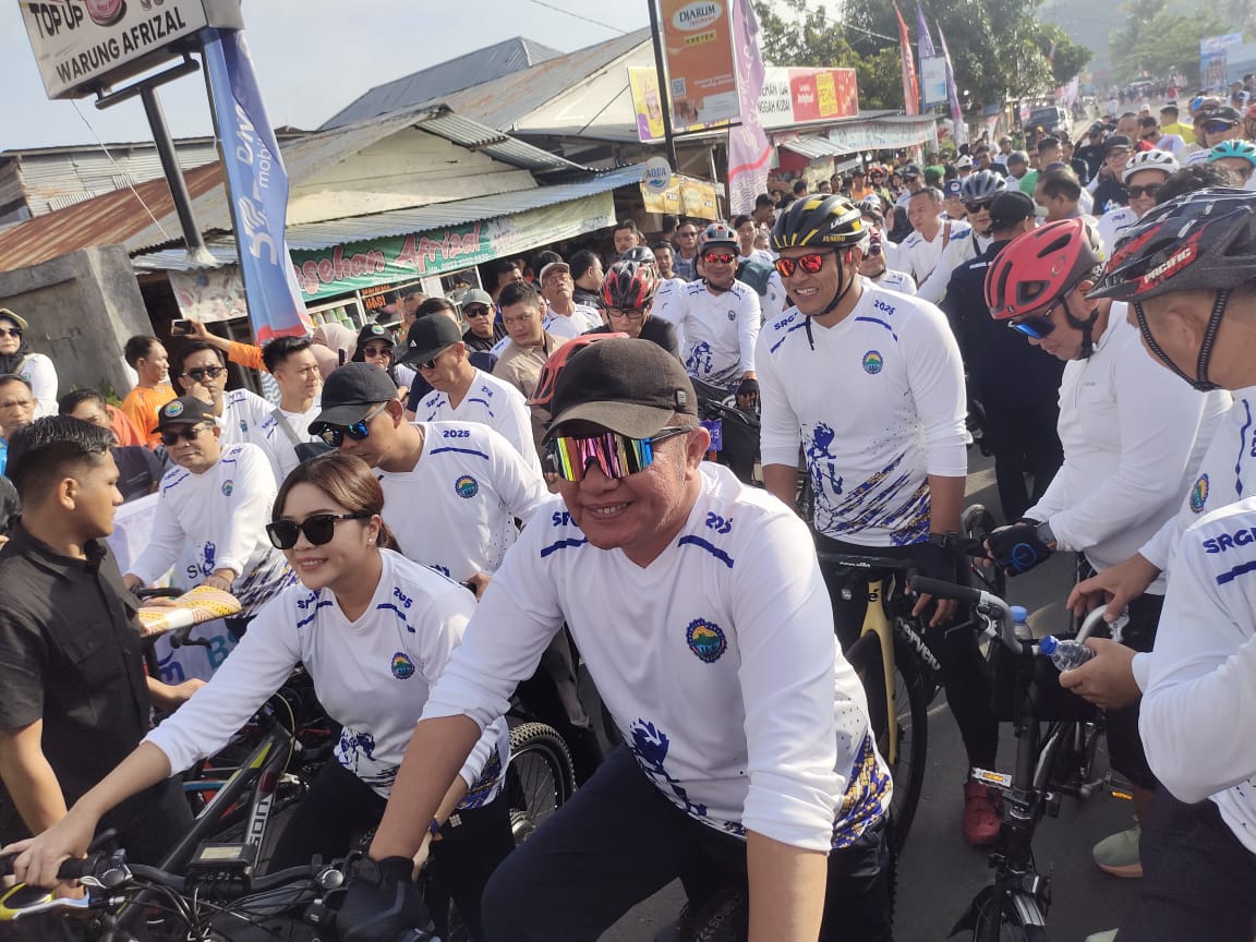 Para goweser atau rider dari berbagai wilayah di Indonesia mengikuti event olahraga yang dipadukan dengan pariwisata (Sport Tourism) Sriwijaya Ranau Gran Fondo (SRGF) Tahun 2025 yang dilaksanakan di kawasan wisata Danau Ranau.