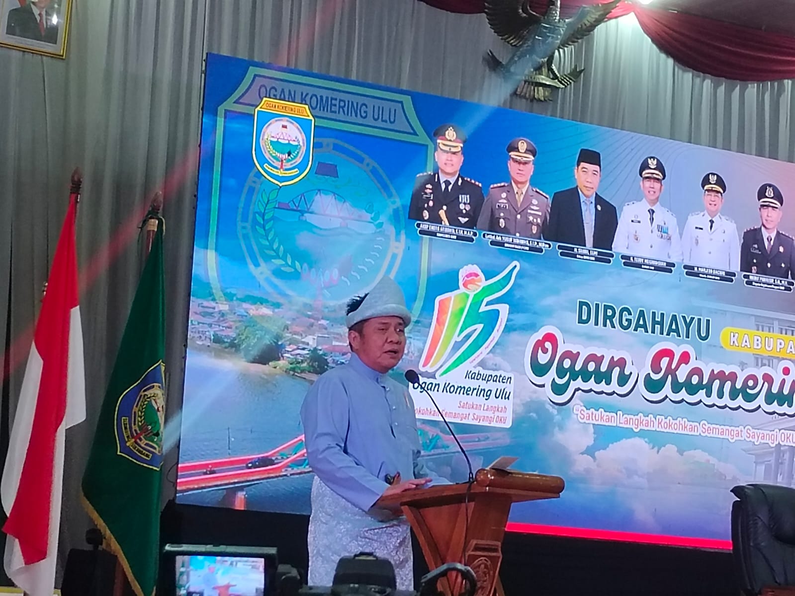 Bupati OKU Teddy Meilwansyah dalam sambutannya. Mengucapkan terima kasih kepada Gubernur Sumsel. Atas perhatian dan dukungan nyata terhadap pembangunan OKU. Ia menyebut ulang tahun ke-115 ini sebagai momen refleksi dan semangat baru bagi kemajuan daerah.