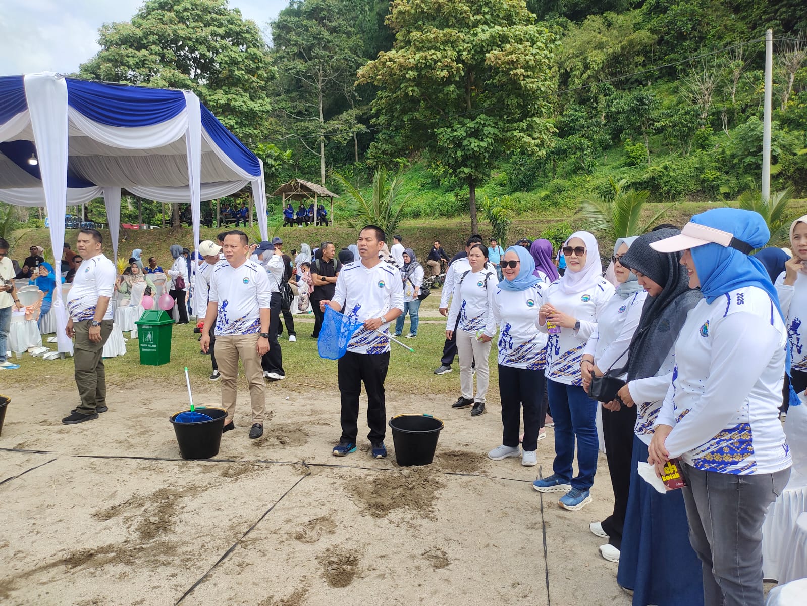 -Kacab UPTB Samsat OKU Selatan Awang Herianto, SH, MM bersama Kacab UPTB Palembang Humaniora Basili Basmark, SE, MSi menghadiri kegiatan Gowes Santai “Sriwijaya Ranau Gran Fondo Tahun 2025” yang digelar di Kawasan Wisata Danau Ranau Banding Agung, OKU Selatan, Sabtu (15/11/2025).