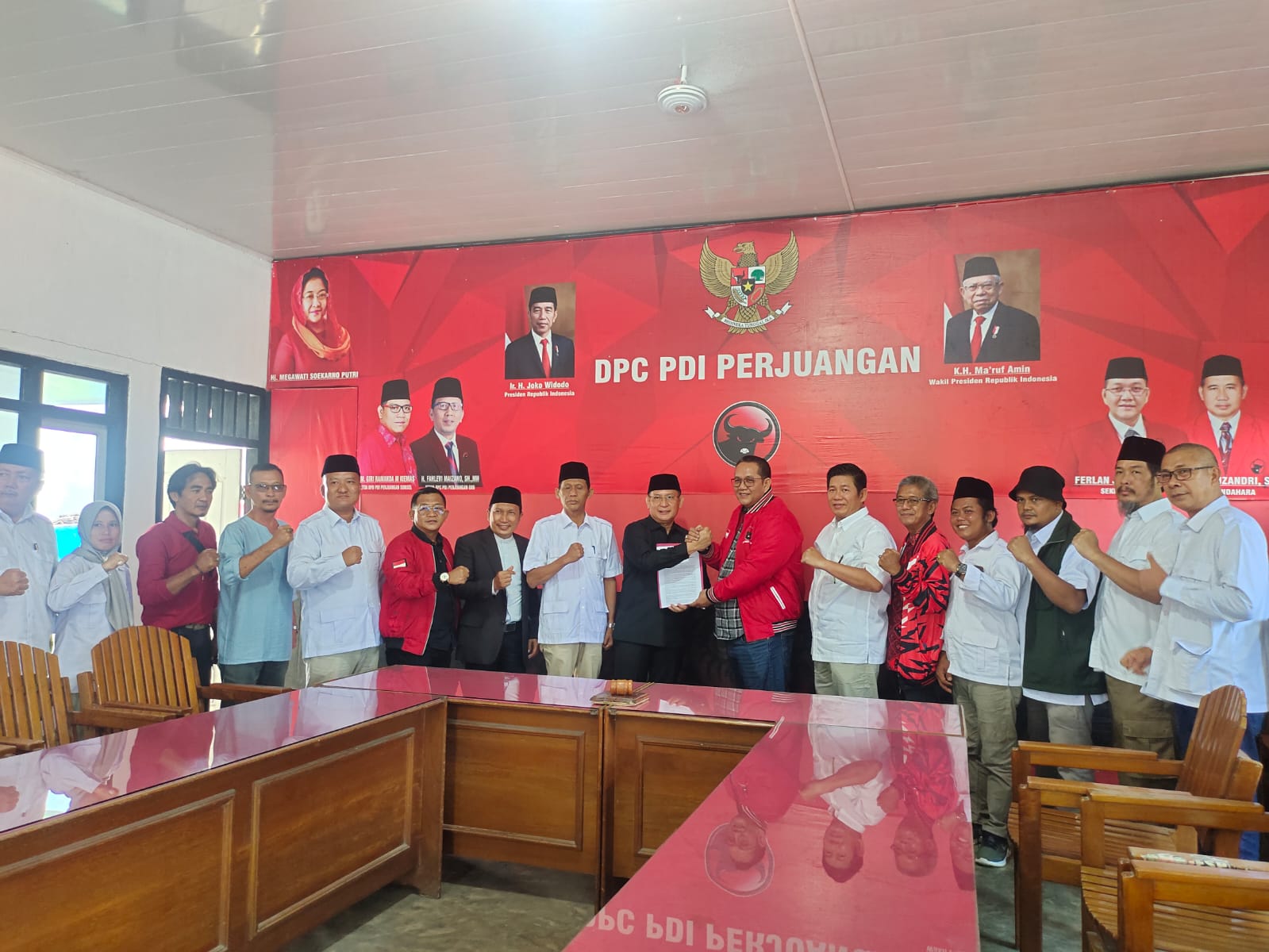 Ir. H. Majito Bachri yang akrab disapa dengan Kang Jito ini mendaratkan pilihan ke dua partai PDIP dan PPP dihari pertamanya, didampingi Pengurus inti partai besutan Capres terpilih Prabowo Subianto diantaranya Wakil Ketua Gerindra OKU Parwin, Sekretaris Gerindra Parwanto, H, MH, Bendahara Gerindra Yoeliandre, Ketua OKK Emroni, SSos, Caleg Terpilih H. Suharman. A Gofur dan tim pemenangan disambut Sekretaris PDI-Perjuangan Ferlan ID Murod dan tim penjaringan kepala daerah DPC PDIP lainnya, Senin (29/4/2024).