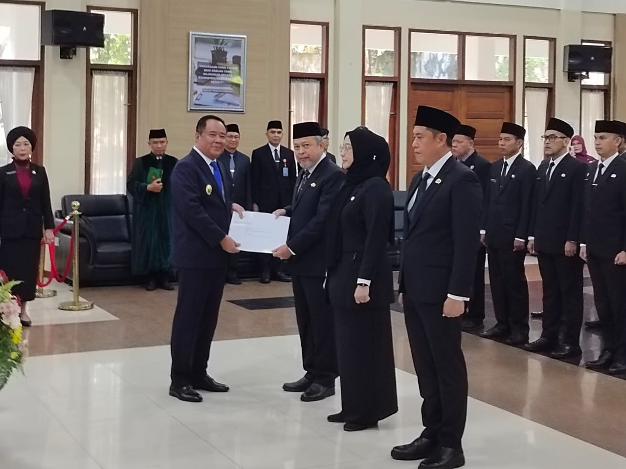 Pelantikan dan pengambilan sumpah yang dilaksanakan di Aula BPSDM Pemprov Sumsel. Berlangsung khidmat dipimpin langsung oleh Wakil Gubernur Sumsel H. Cik Ujang, dan dihadiri juga oleh Asisten 2, Kepala BKD Ismail Fahmi dan para pejabat lainnya dilingkungan Pemprov Sumsel. Jum’at (03/10/2025).
