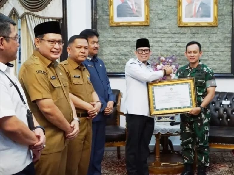 Setelah menyerahkan kunci rumah dan berikan bantuan kepada masyarakat, Pangdam II/Sriwijaya memberikan penghargaan kepada Bupati OKU, Bupati OKU Timur, Bupati OKU Selatan dan Dirut PT Semen Baturaja Tbk.