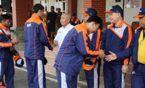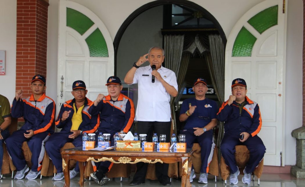 BATURAJA OKU-Bupati OKU Drs. H. Kuryana Azis melepas kontingen Kabupaten OKU sebanyak 260 peserta yang akan berkompetisi di Pekan Olahraga Provinsi Sumatera Selatan (Porprov Sumsel) Ke-12 Tahun 2019 di Kota Prabumulih. Pelepasan kontengen bertempat di Rumah Kabupaten, Senin (11/11/2019).