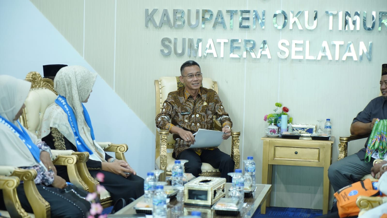 Wakil Bupati OKU Timur H.M. Adi Nugraha Purna Yudha, S.H. bersama Jemaah Umroh Kabupaten OKU Timur di Ruang Media Center Pemkab OKU Timur