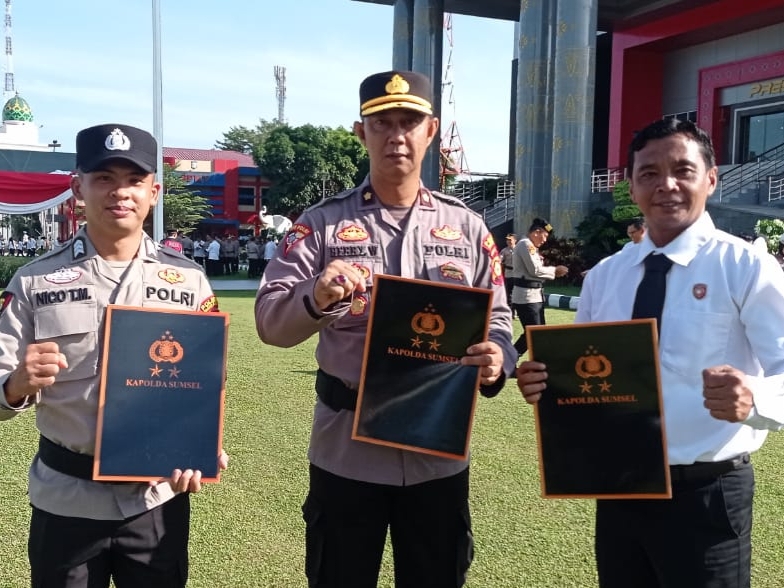 Penghargaan diserahkan langsung oleh Wakapolda Sumsel, Brigjen Pol M. Zulkarnain, S.I.K., M.Si., saat apel pagi di Mapolda Sumsel, Senin, 4 Agustus 2025. Penerima penghargaan yakni Kompol Herry Widodo, Bripka Efryansyah, Brigpol Nico Trimandala, dan Brigpol Edwin Putra Tanjung.